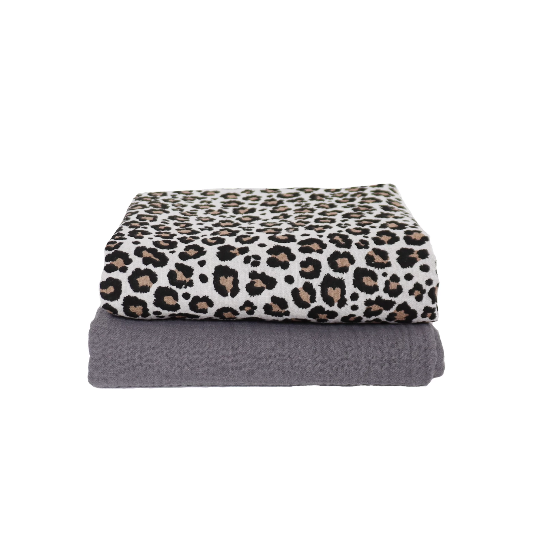 Deze luipaard print is gedrukt op een taupe/ grijzige achtergrond. Mooi gecombineerd met grijs