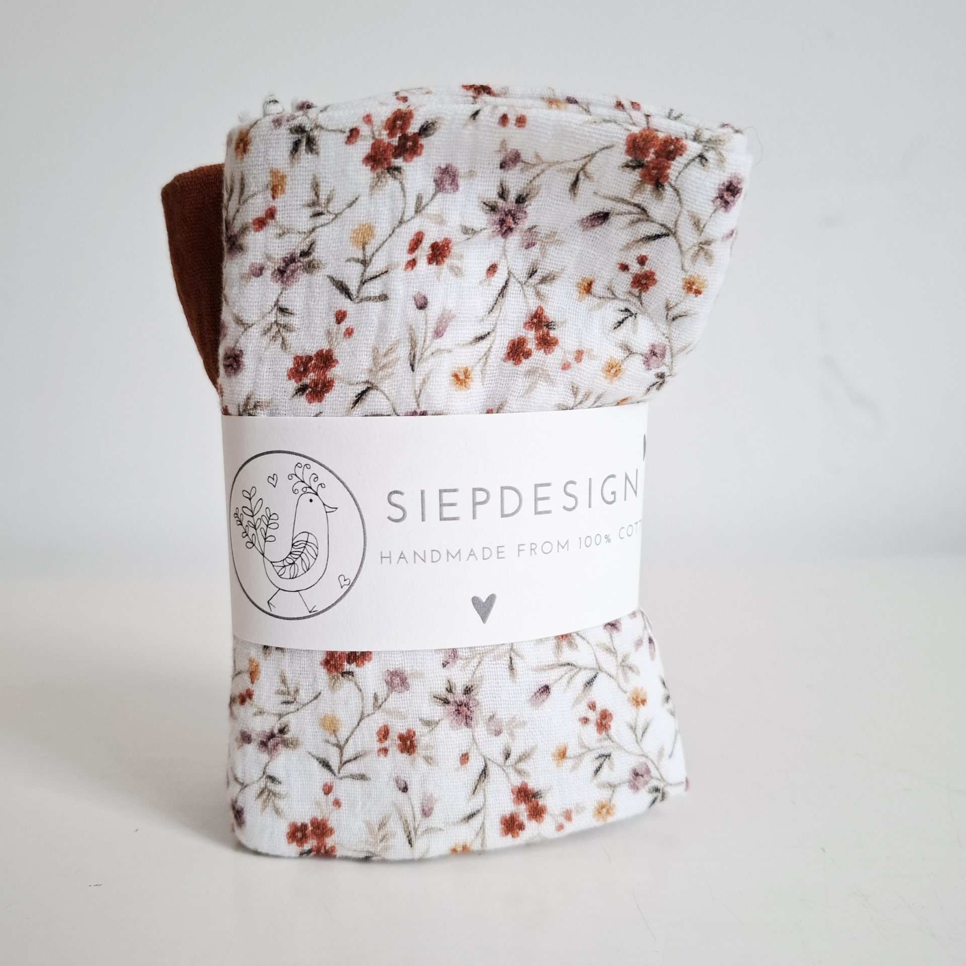 - Set van 2 stuks -> 1 x printje met bloemetjes, 1x een effen doekje in de mooie diep-bronze kleur