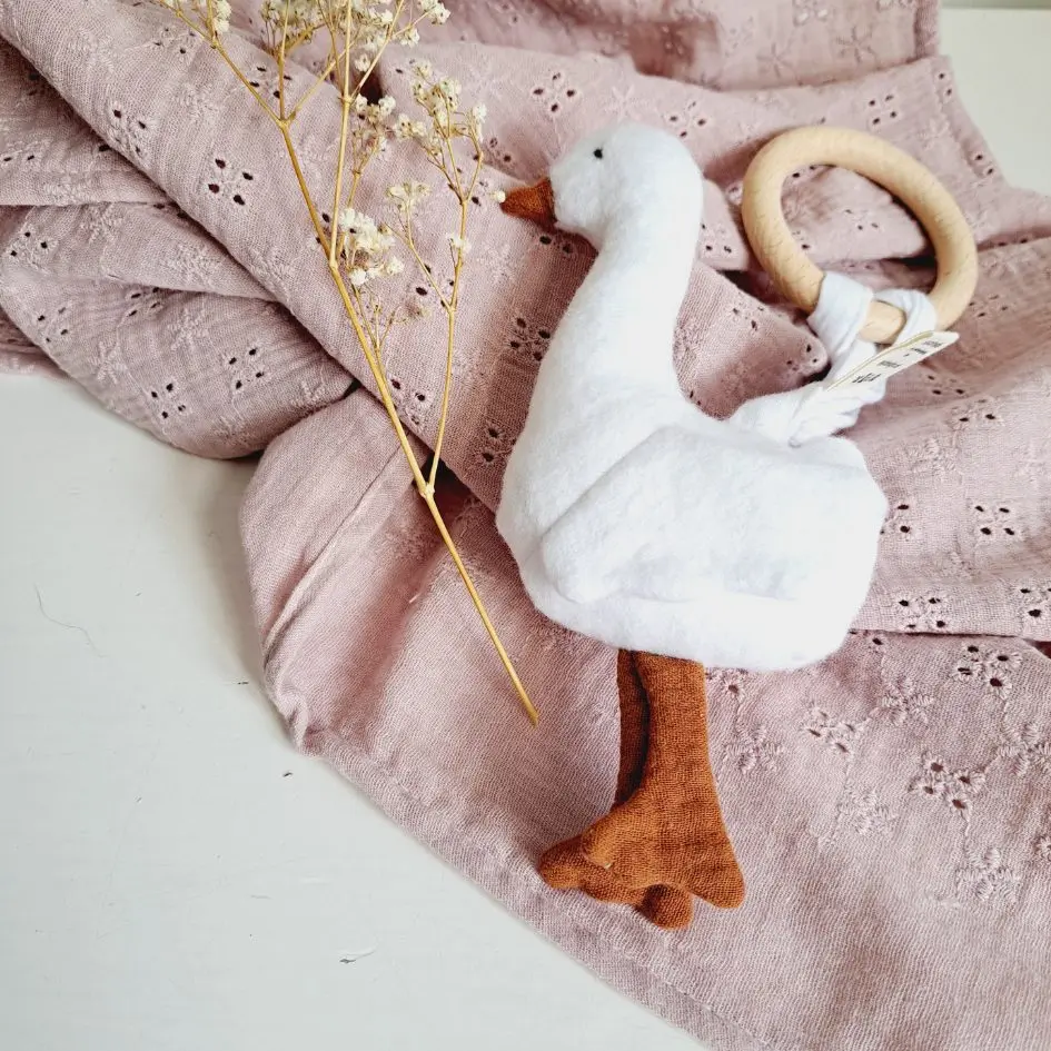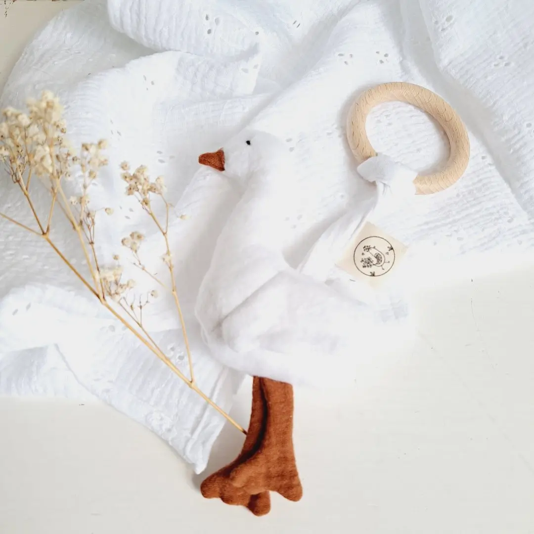- Eendje speelkameraadje: Het schattige eendje, compleet met een beukenhouten bijtring en een vrolijk piepje, biedt niet alleen knuffelplezier maar ook verlichting tijdens doorkomende tandjes.